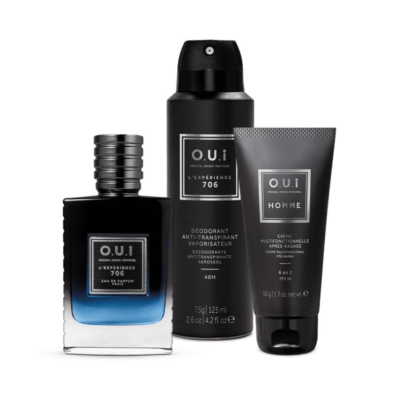 O Combo L’Expérience é ideal para quem busca uma rotina de autocuidado completa. O Eau de Parfum, o Desodorante Antitranspirante e o Creme Multifuncional Pós-Barba se complementam para uma experiência sensorial única.