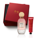 L'art du cadeau* está nos detalhes, que fazem do presente uma prova de amor. A sofisticada caixa de presente O.U.i é o item de puro charme e sofisticação que vai conquistar a pessoa presenteada. De cor vermelha sofisticada, o charme do seu design e o deslizar do seu material revela o símbolo da marca, em um tom dourado luxuoso. Ela vem junto ao combo para você montar e guardar os itens do combo, se envolvendo ainda mais na *arte de presentear