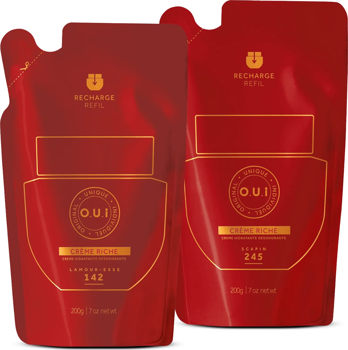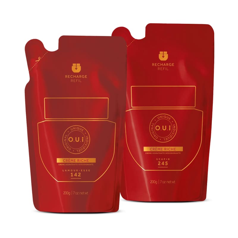 O Combo O.U.i com Refil Crème Riche L’Amour-Esse 142 e Refil Crème Riche Scapin 245 oferece de forma mais sustentável um modo repor seus cremes desodorantes favoritos. Desfrute de momentos de autocuidado contínuos, garantindo hidratação e perfumação luxuosas para sua pele.