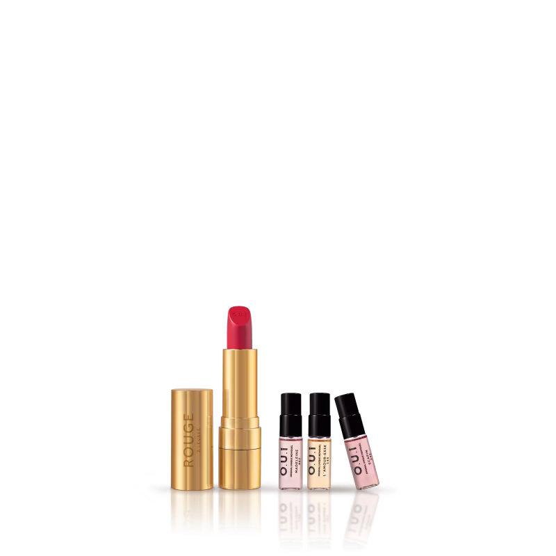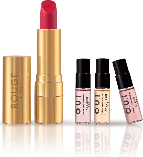 La Collection 01 O.U.i nos convida a explorar o elegante universo da alta perfumaria francesa. Além de completar a sua rotina de perfumação com aromas envolventes, o batom vermelho vivo compõe o visual com um verdadeiro charme francês. Diga O.U.i para si mesma!