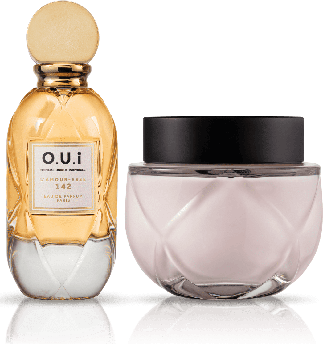 Conjunto com eau de parfum e creme hidratante corporal. L’Amour-Esse 142 O.U.i Feminino traz a elegante fragrância floral branca como complemento do visual sofisticado da mulher contemporânea.