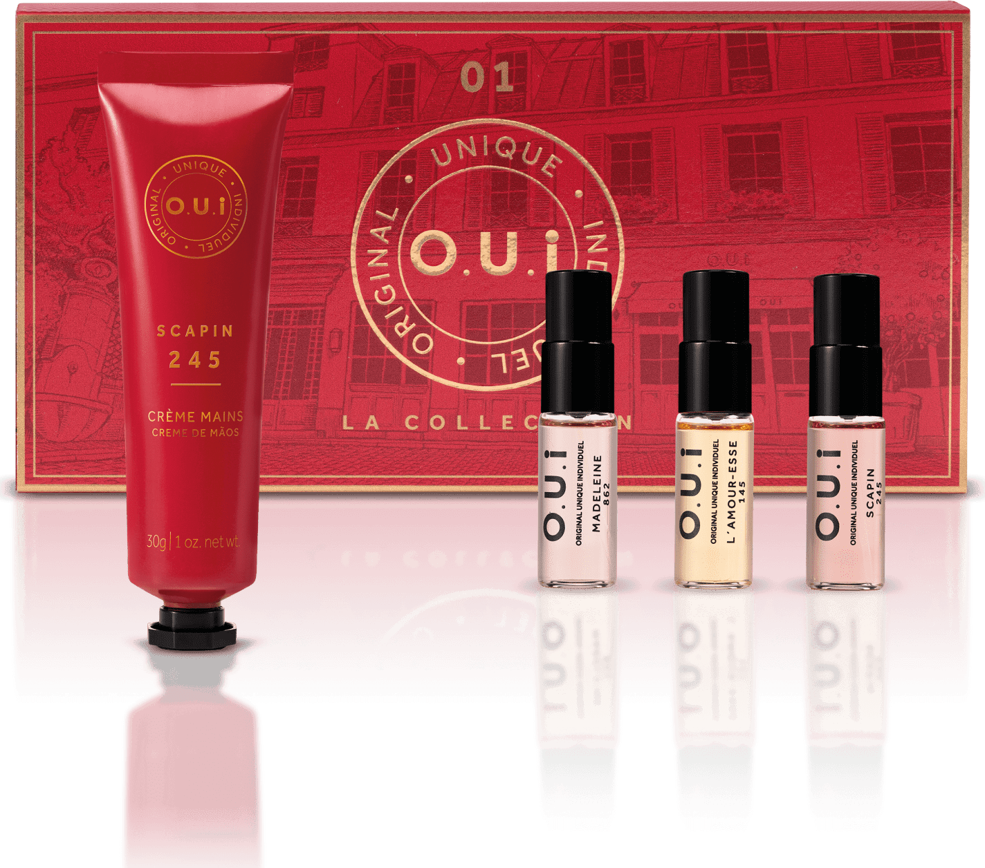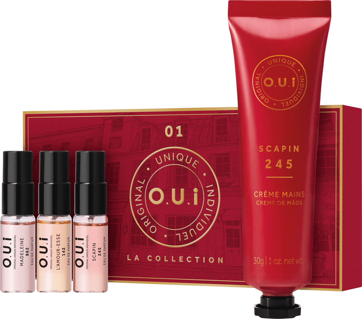Embarque em uma viagem pelo universo da alta perfumaria francesa com a coleção de experiências olfativas que é a La Collection, com 3 diferentes fragrâncias O.U.i. Quando acompanhada do Creme de Mãos Scapin 245 seu itinerário fica mais completo, delicado e nutritivo.