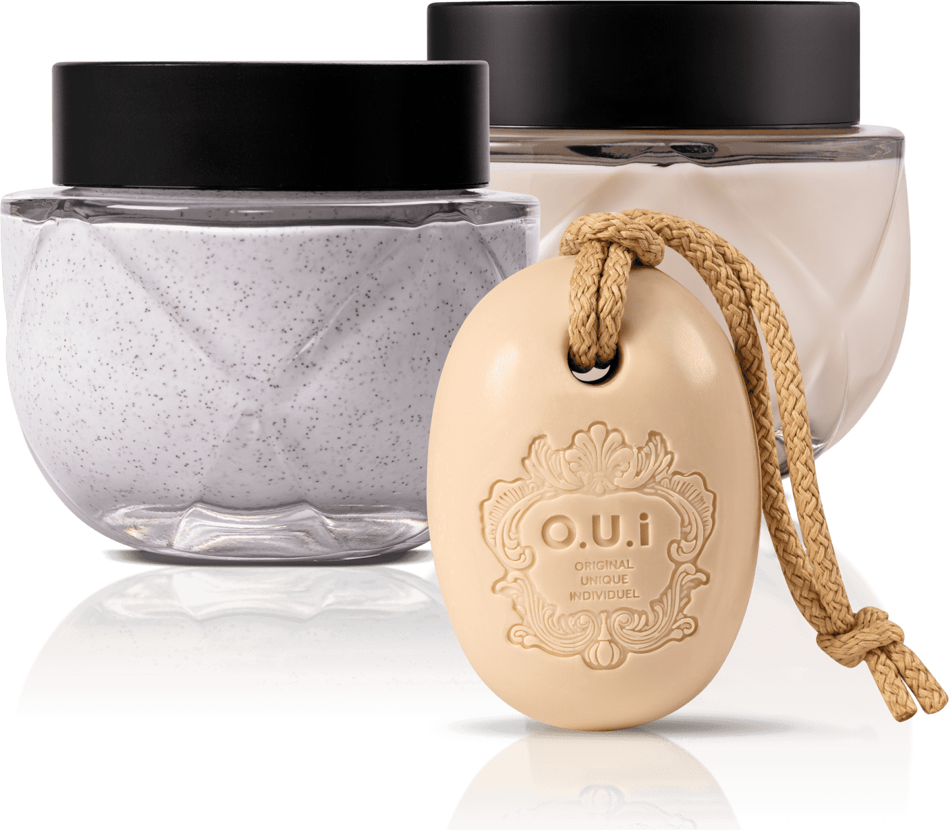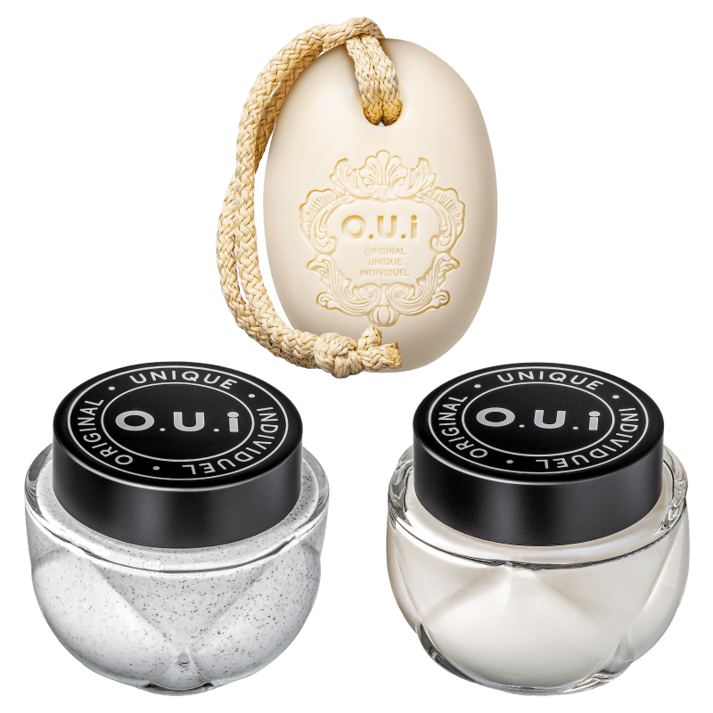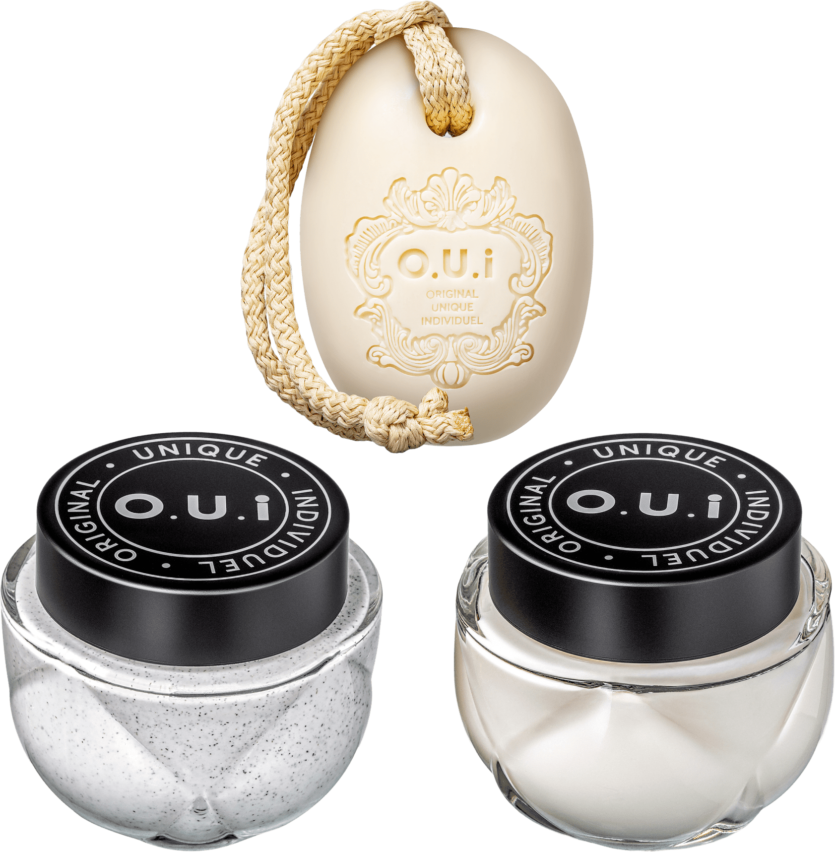 Desvende um ritual completo com a combinação do seu sabonete em barra, creme esfoliante e creme hidratante desodorante corporal. O Kit O.U.i L'Amour-Esse 142 limpa, renova e hidrata profundamente a pele.
