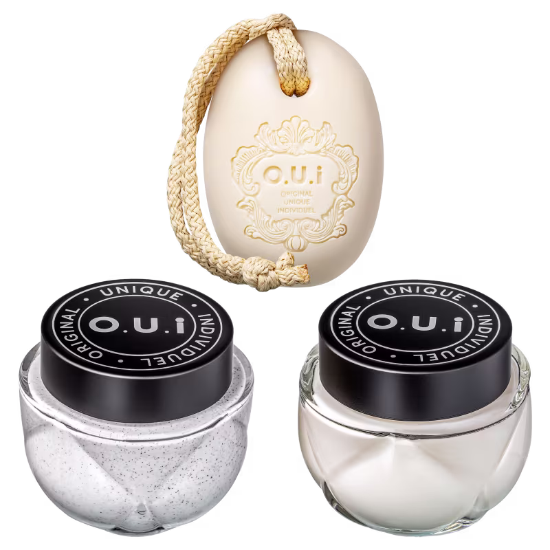 Desvende um ritual completo com a combinação do seu sabonete em barra, creme esfoliante e creme hidratante desodorante corporal. O Kit O.U.i L'Amour-Esse 142 limpa, renova e hidrata profundamente a pele.
