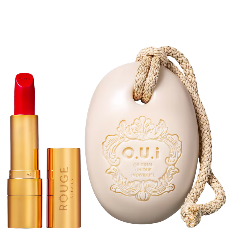 Simplesmente espetacular. Transforme sua rotina em uma ebulição de frescor com o perfumado sabonete em barra de O.U.i e a sofisticação do Carmin do Batom Rouge à Lévres.