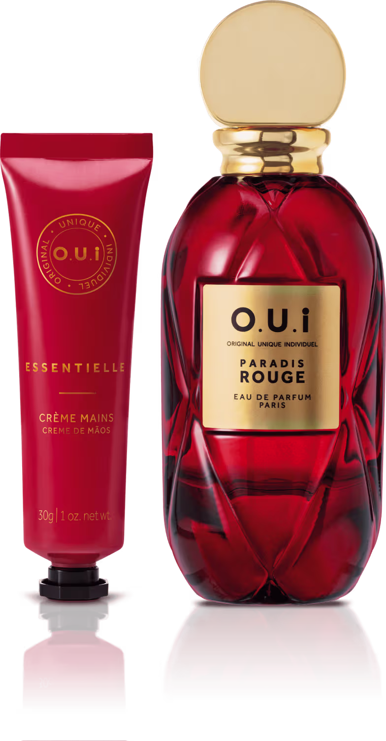 Desvende um ritual completo através da combinação do seu Eau de Parfum com o Creme Hidratante para as Mãos. O Kit Paradis Rouge O.U.i Feminino hidrata profundamente e perfuma a pele, com fragrâncias icônicas.