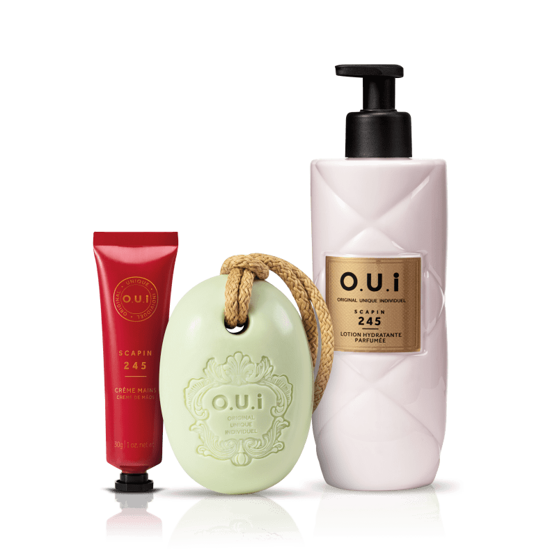 O Kit O.U.i Scapin 245 & Jardin de Grasse, combina produtos essenciais para o seu ritual diário. Aproveite um momento de indulgência com fragrâncias criadas por master-perfumistas franceses, que inspiram a viver com mais irreverência.