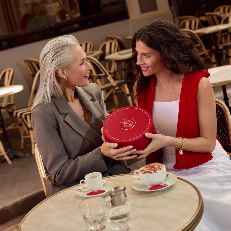 Para finalizar com élégance, a caixa presenteável O.U.i reflete a sofisticação francesa. Em tom vermelho intenso com detalhes dourados, ela transforma o ato de presentear em uma experiência memorável e très chic.