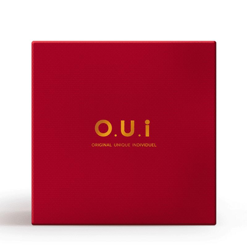 Caixa presenteável O.U.i vermelha acompanhada de papel de seda e etiqueta para encantar quem você ama. Ver mais ❯