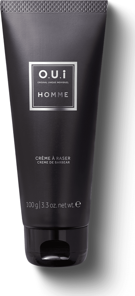 O.U.i Creme de Barbear Crème à Raser Homme cuida do seu rosto na hora do barbear, entregando cuidado, hidratação e uma fragrância levemente amadeirada, moderna e elegante.